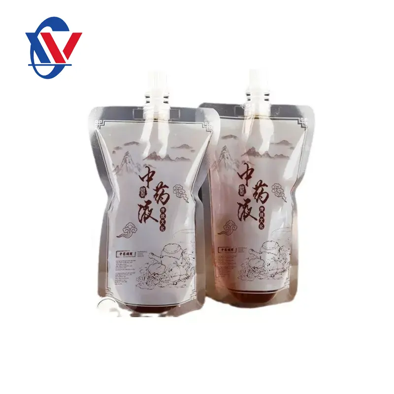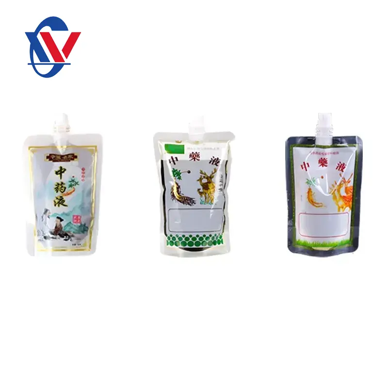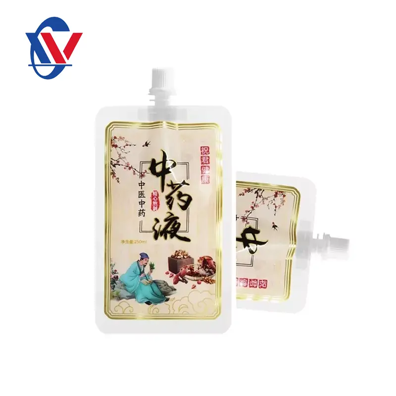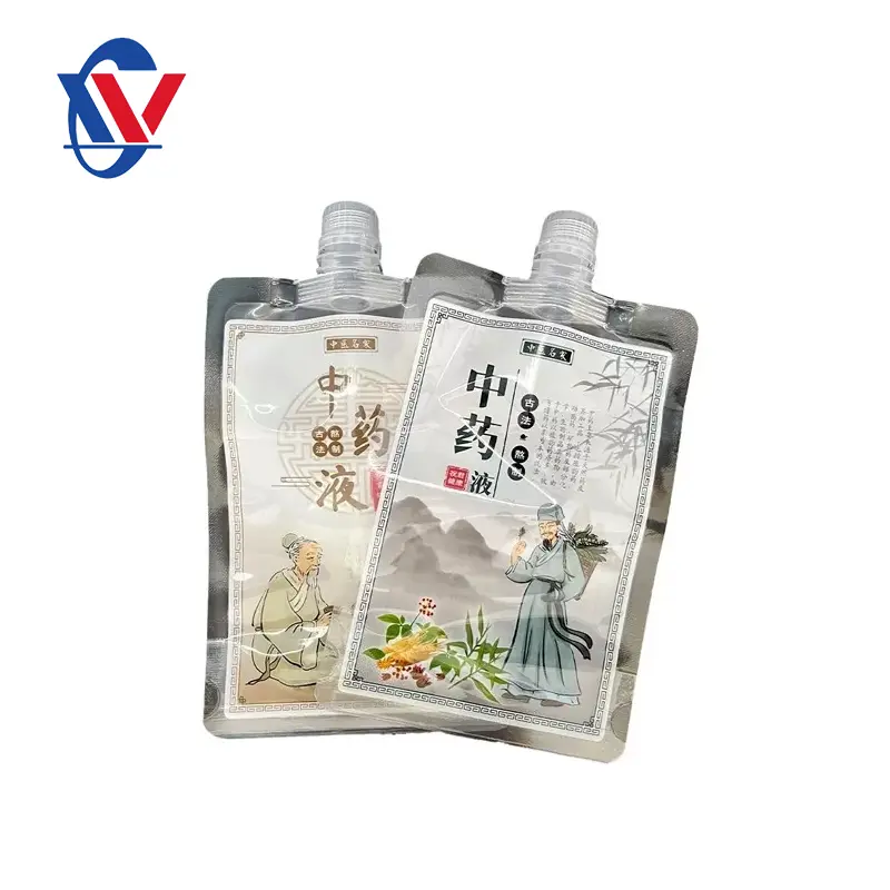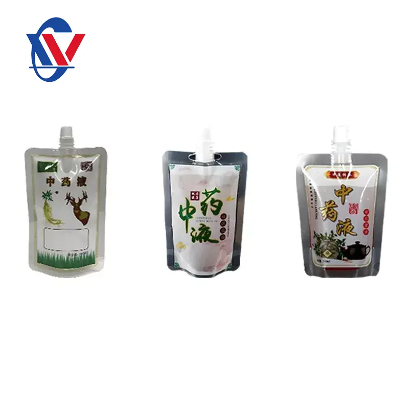 Bolsas de boquilla de medicina china Combinación de material: ①Bopa+LDPE; ②PET+LDPE; ③BOPA+RCPP; ④pet+bopa+rcpp; ⑤Bopp+VMPET+LDPE; ⑥PET+AL+BOPA+LDPE; ⑦Customizado