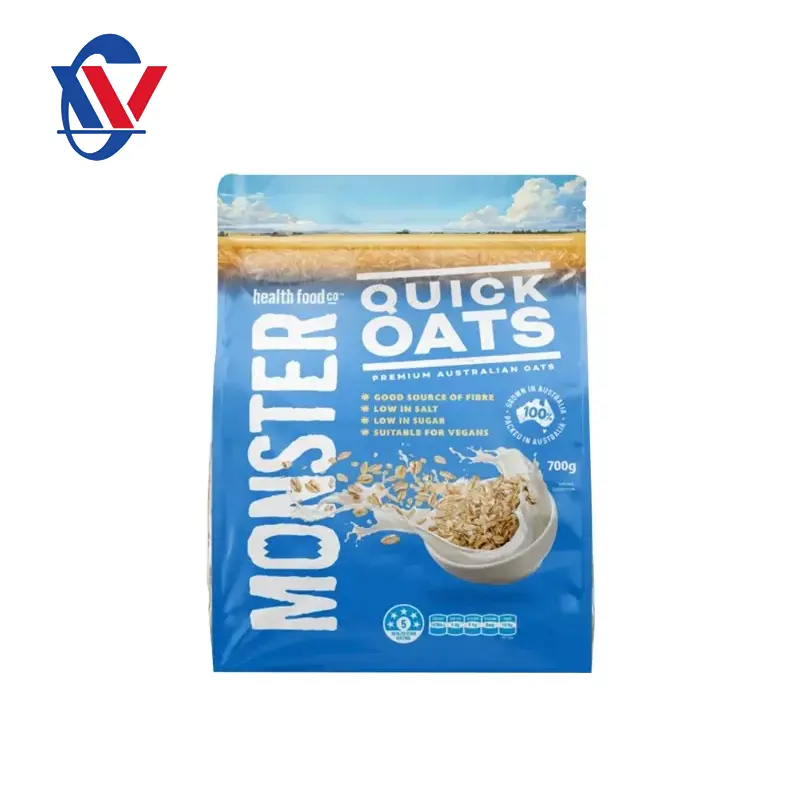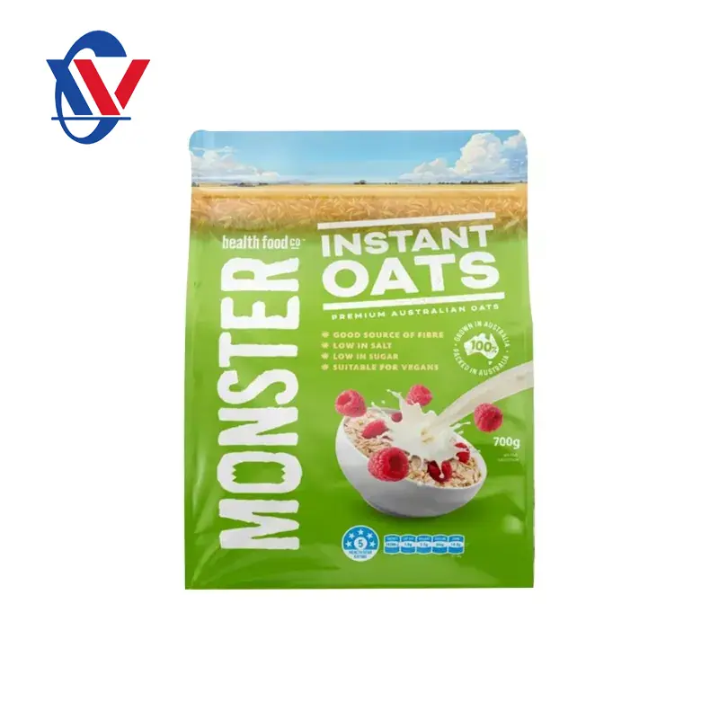 Nuestras bolsas de embalaje de comida de avena están hechas de absorbentes de oxígeno, películas de alta barrera, impresión de gravedad de espejo, impresos con recubrimientos ecológicos para crear una solución de empaque visualmente impresionante que se muestra maravillosamente en los estantes de las tiendas. Las bolsas de embalaje de alimentos de avena de Bingye hechas de la película de barrera reciclable, flexible y resistente a los pinchazos, los absorbedores de oxígeno evitarán los elementos nocivos y mantendrán el producto más fresco durante más tiempo.
